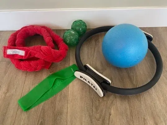 2. Tuck a Magic Circle, Fletcher Towel, resistance bands, Franklin Balls, or a small inflatable ball into your suitcase.